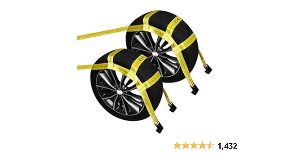 Jchl Tow Dolly Basket Straps With Flat Hooks 2 Pack Yellow Car Wheel Straps Universal Vehicle Tow Dolly Straps System Fits 14 19 Tires Wheels 10000 Lbs Working Capacity Towing Straps Ropes